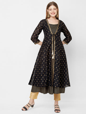 Unleash your inner fashionista with the Women Woven Rayon Embroidered A Line Kurta. Made from...