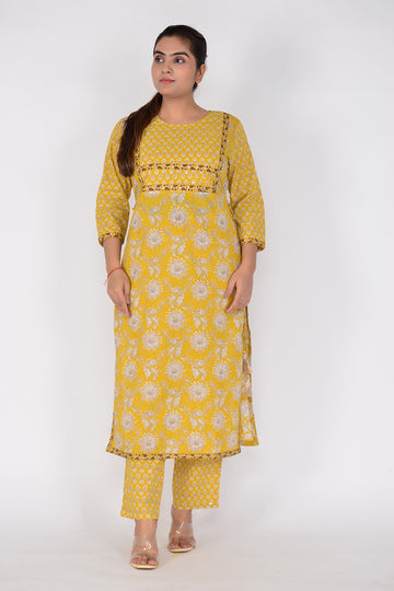 Experience the comfort and style of our Sitayya Ethnic Kurta Pant Set, featuring a Straight...