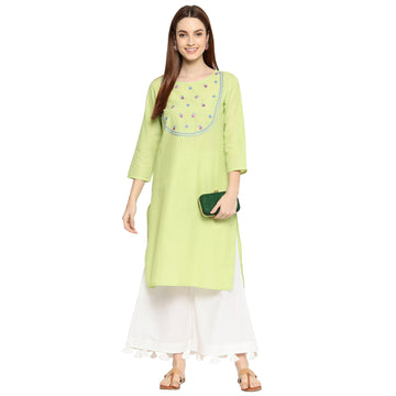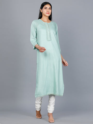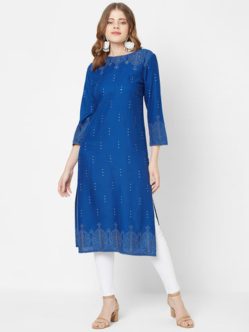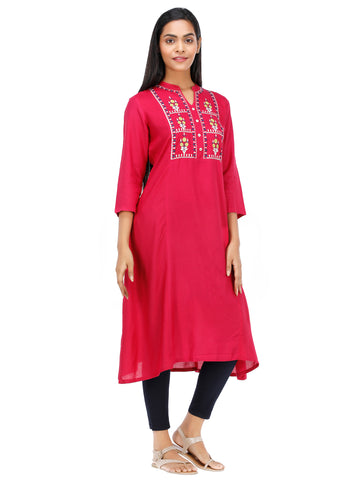 Unleash your inner fashionista with the Women Woven Rayon Embroidered A Line Kurta. Made from...