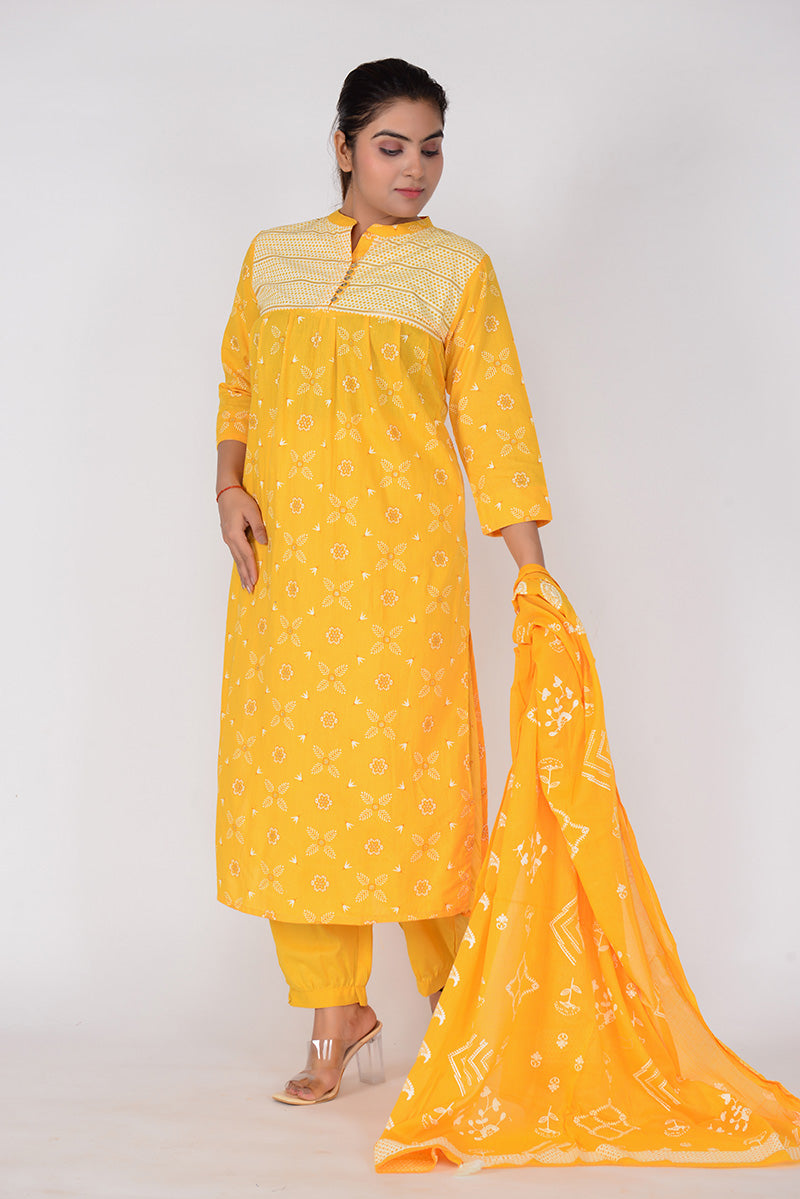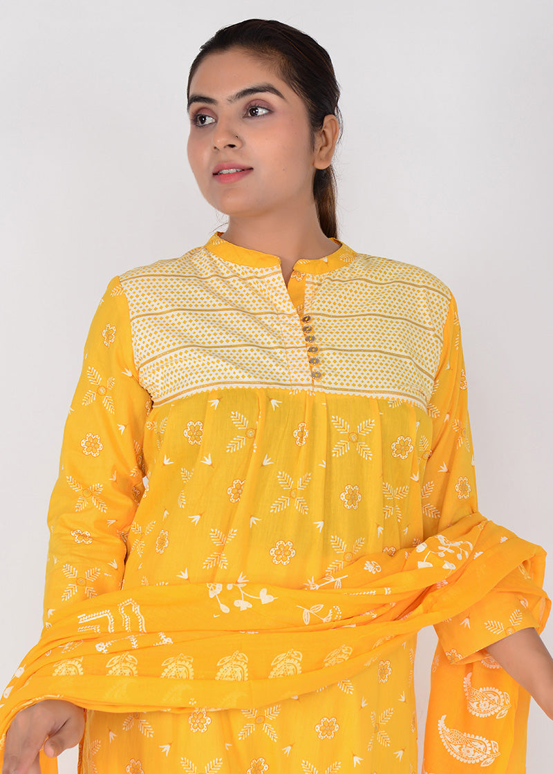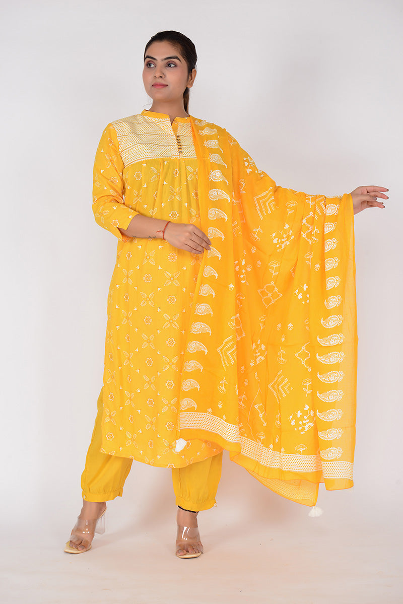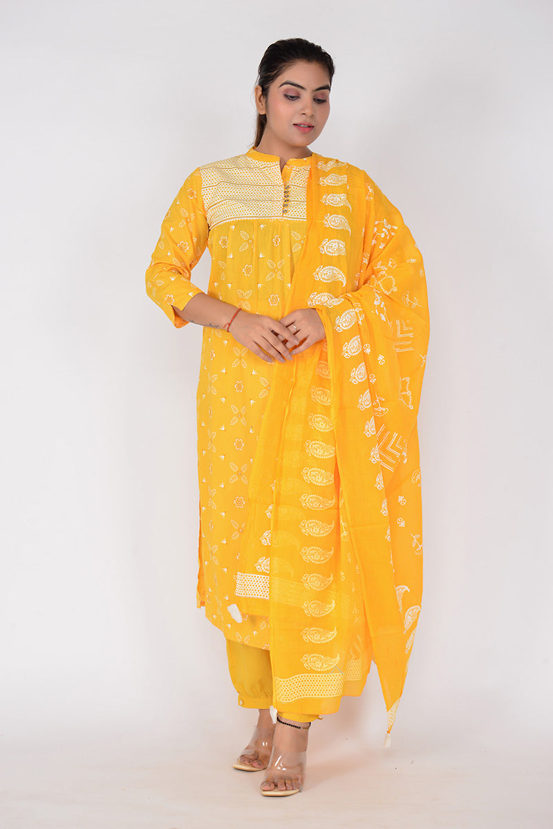 Women Printed Straight Fit Woven Cotton Kurta Pant Dupatta Set