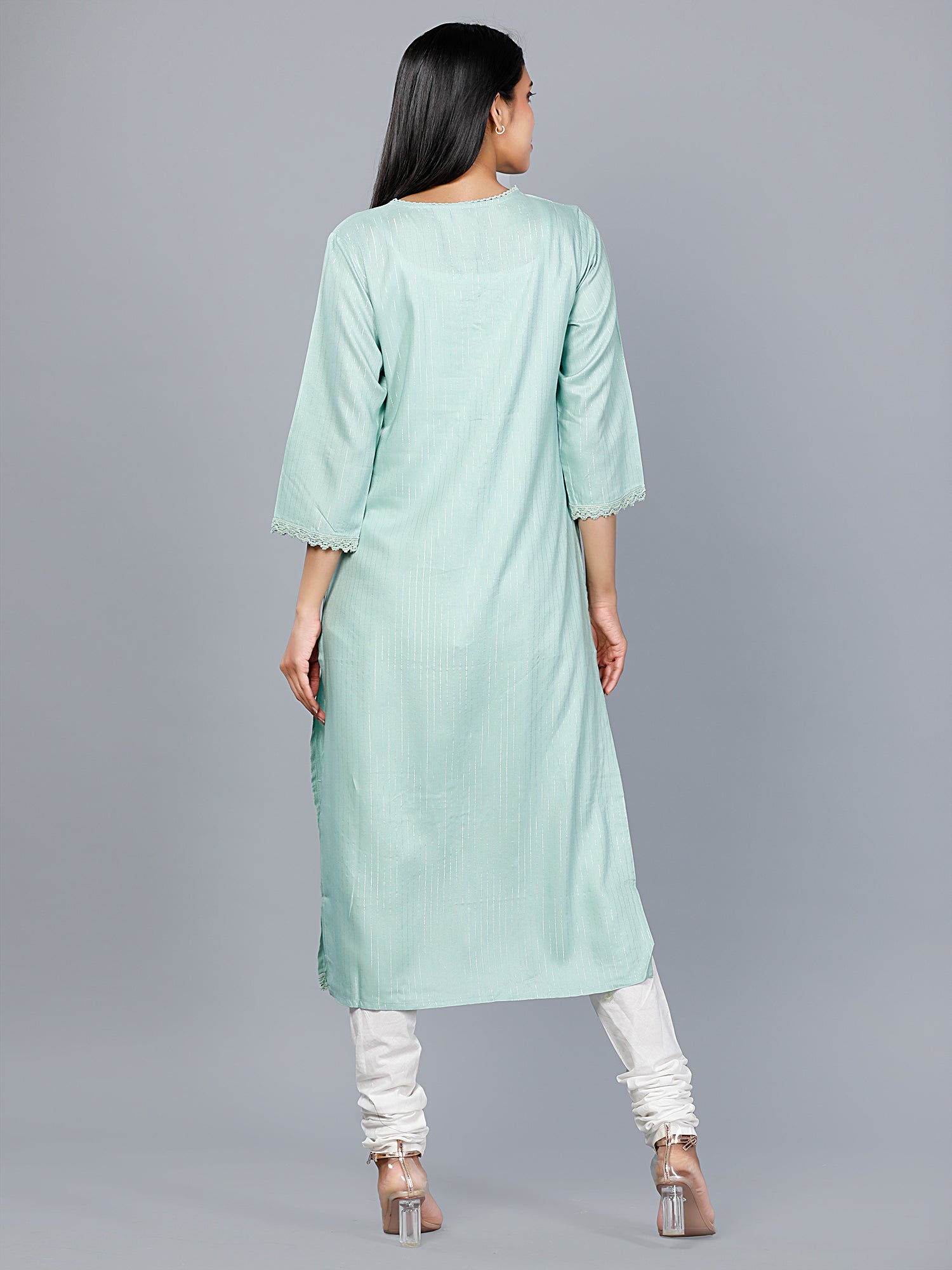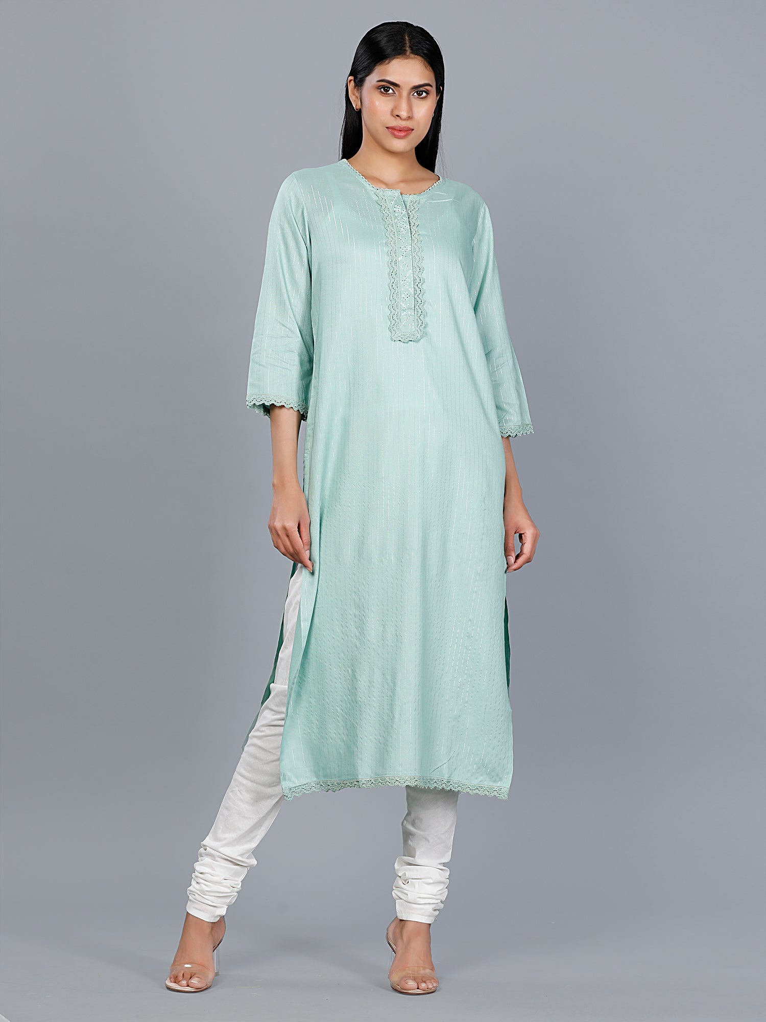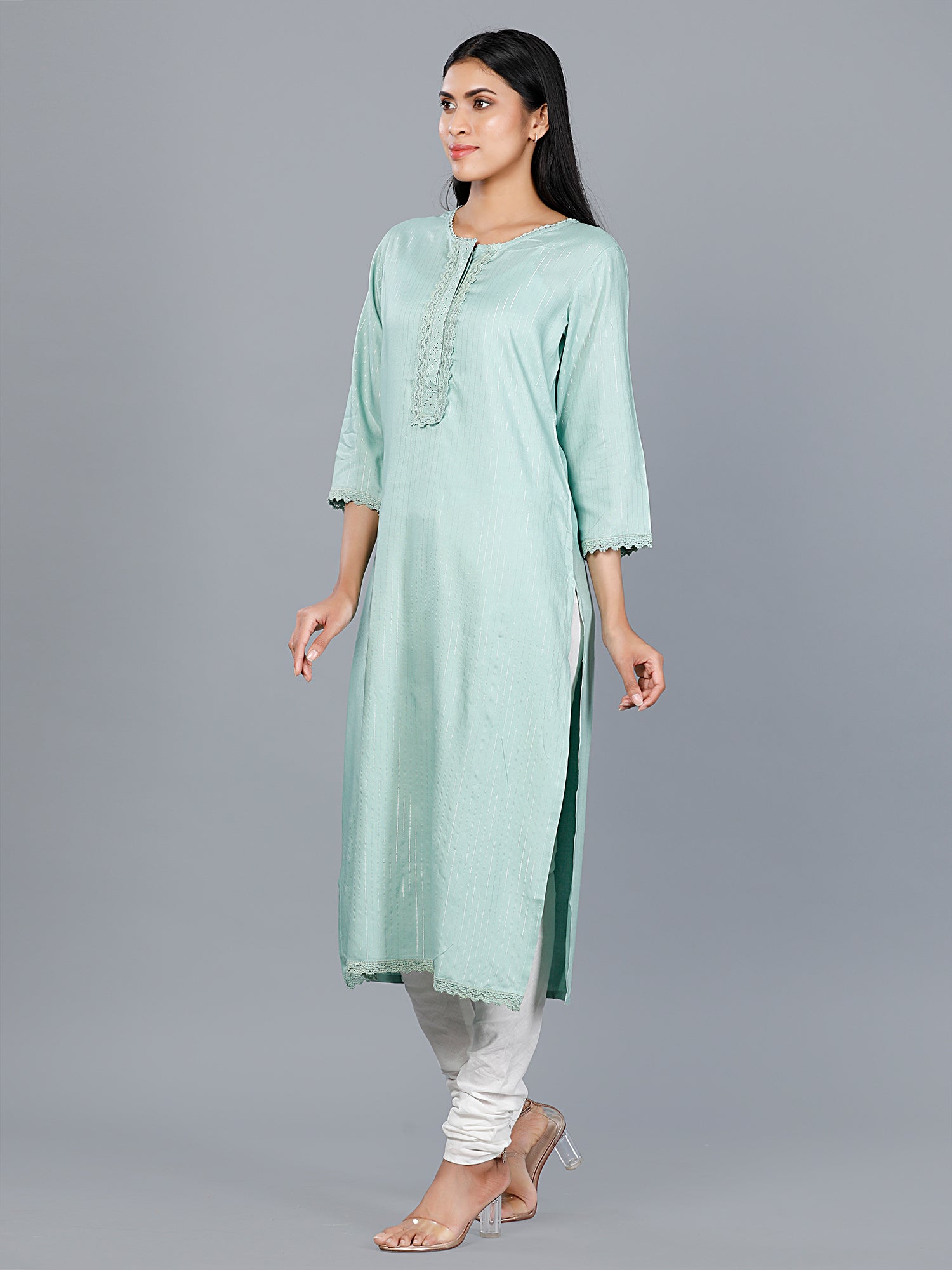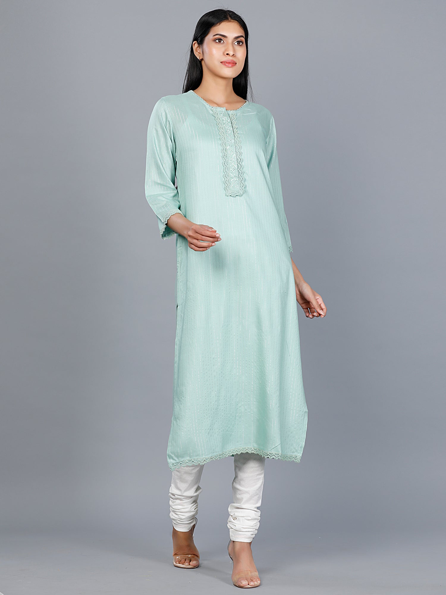 This kurta is made of high-quality woven rayon lurex fabric, providing both style and durability. The round neck design adds a touch of elegance to the 48" L size, making it a versatile piece for any occasion. Plus, with a pack of 1 kurta included, it's a great value for your wardrobe.